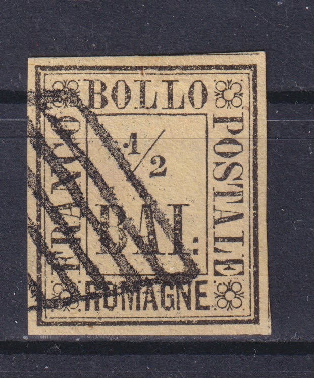ANTICHI STATI – ROMAGNE 1/2 BAJ – 1859 – ANNULLATO – cert. Sottoriva