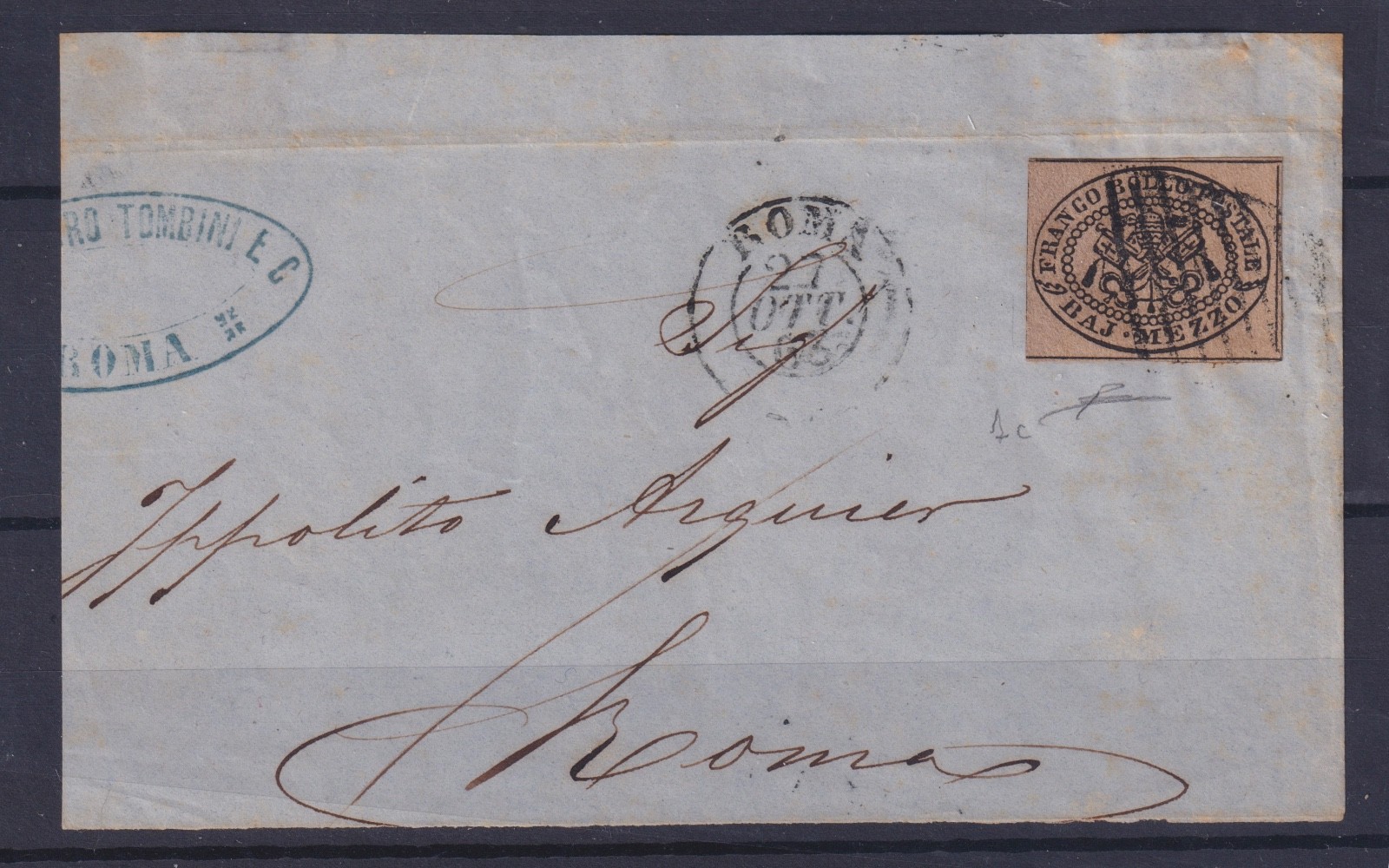 ANTICHI STATI – PONTIFICIO FRONTESPIZIO – 1852 – ANNULLATO – cert. Diena