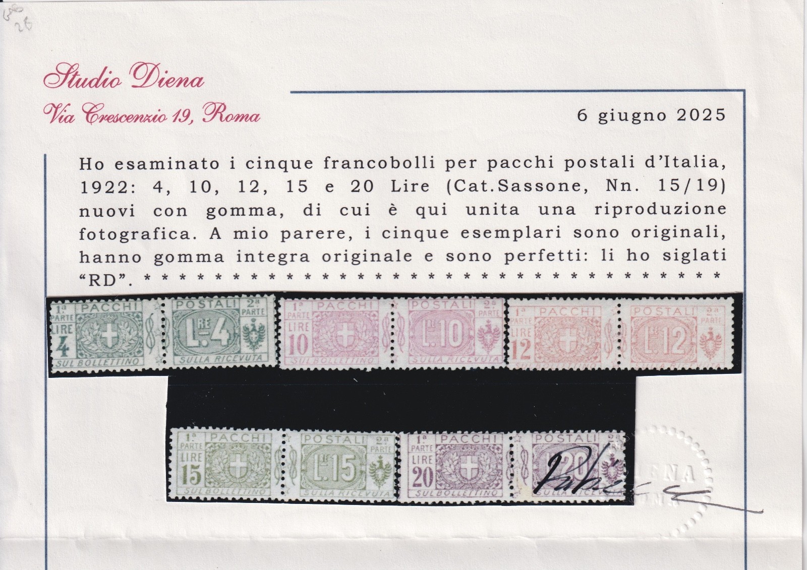1922 REGNO PACCHI NODO SAVOIA MNH CERTIFICATO DIENA quantità