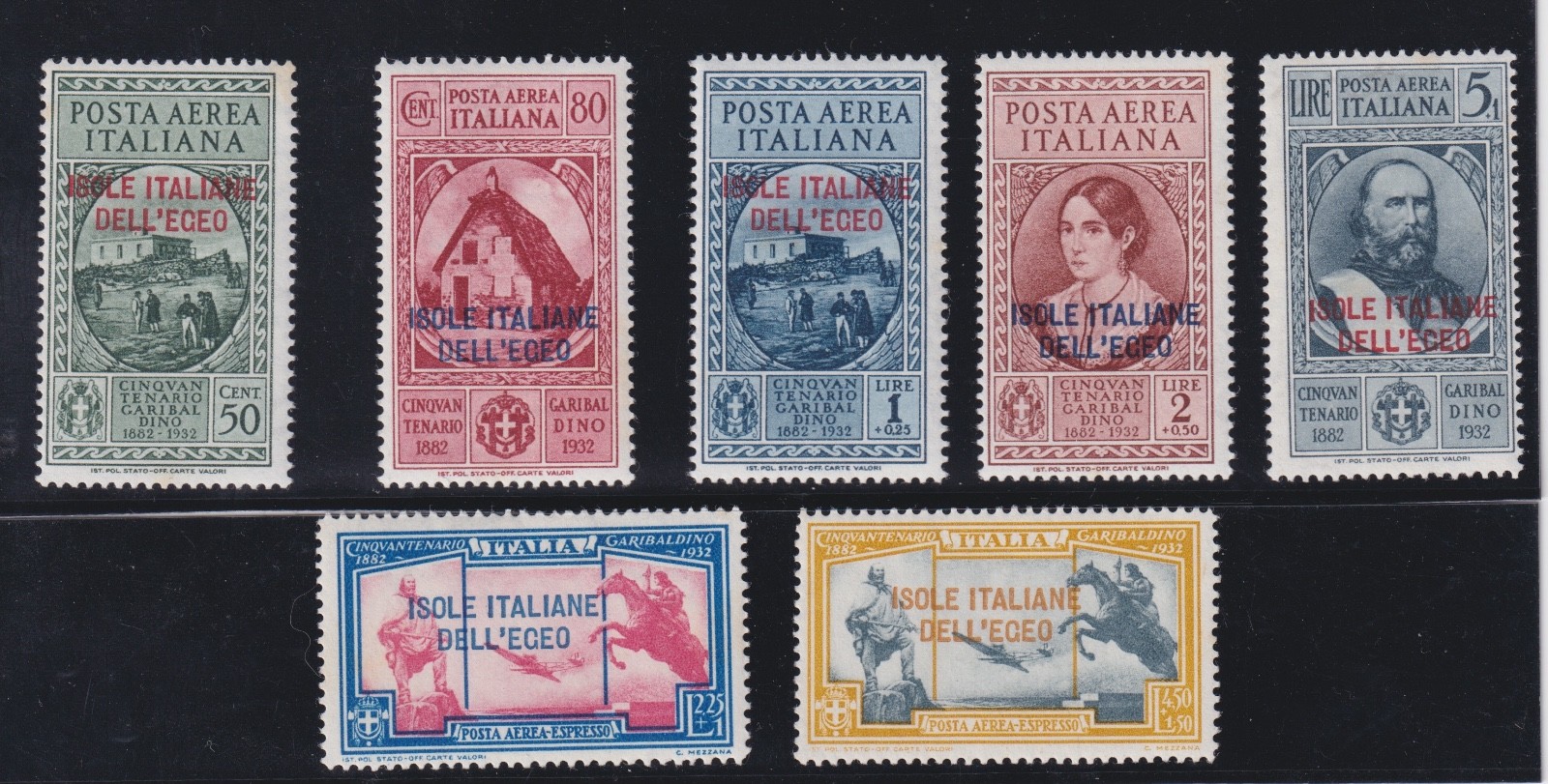 1932 ISOLE EGEO CINQUANTENARIO GARIBALDINO P.A. MNH CERT. DIENA – SERIE COMPLETA