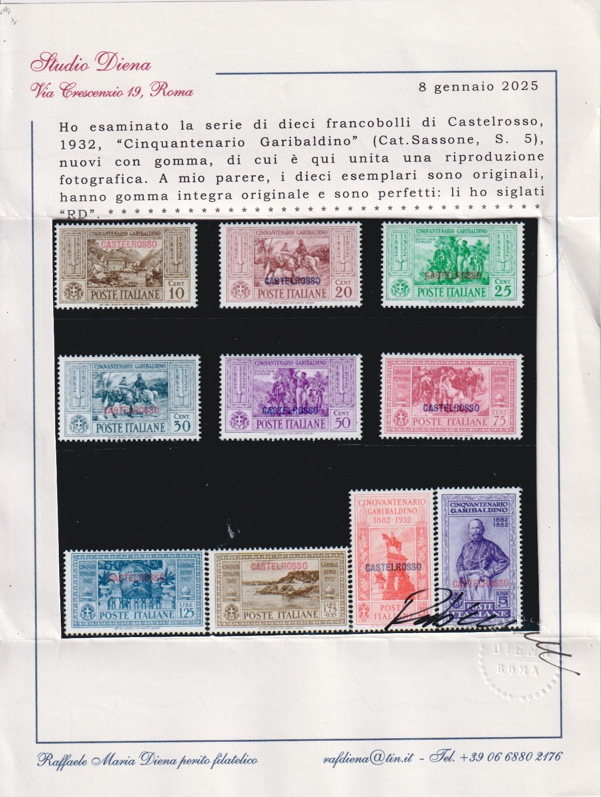 1935 CASTELROSSO - CINQUANTENARIO GARIBALDINO MNH CERTIFICATO DIENA quantità