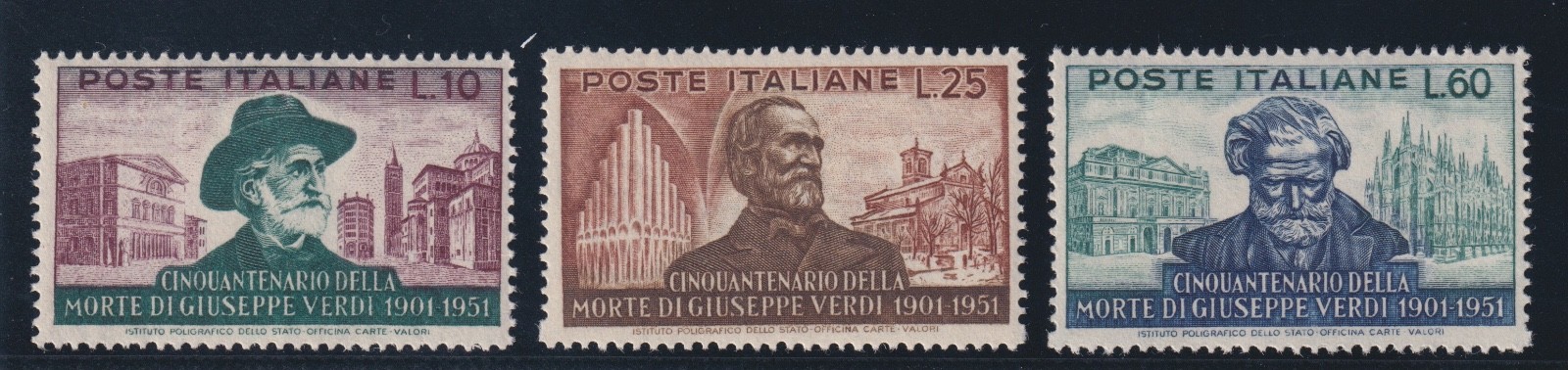 1951 ITALIA REPUBBLICA CINQUANTENARIO MORTE DI G. VERDI 3 VAL. MNH