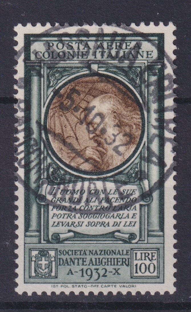 Colonie Emissioni Generali 1932 Dante Alighieri lire 100 cert. Sottoriva