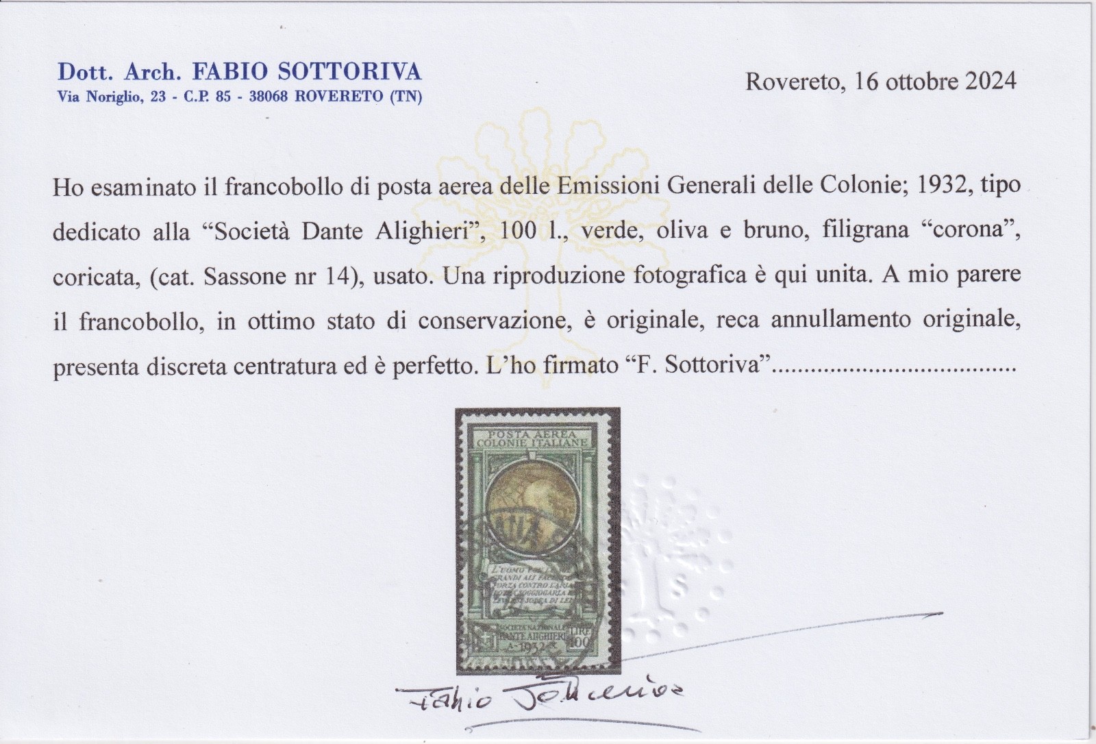 Colonie Emissioni Generali 1932 Dante Alighieri lire 100 cert. Sottoriva quantità