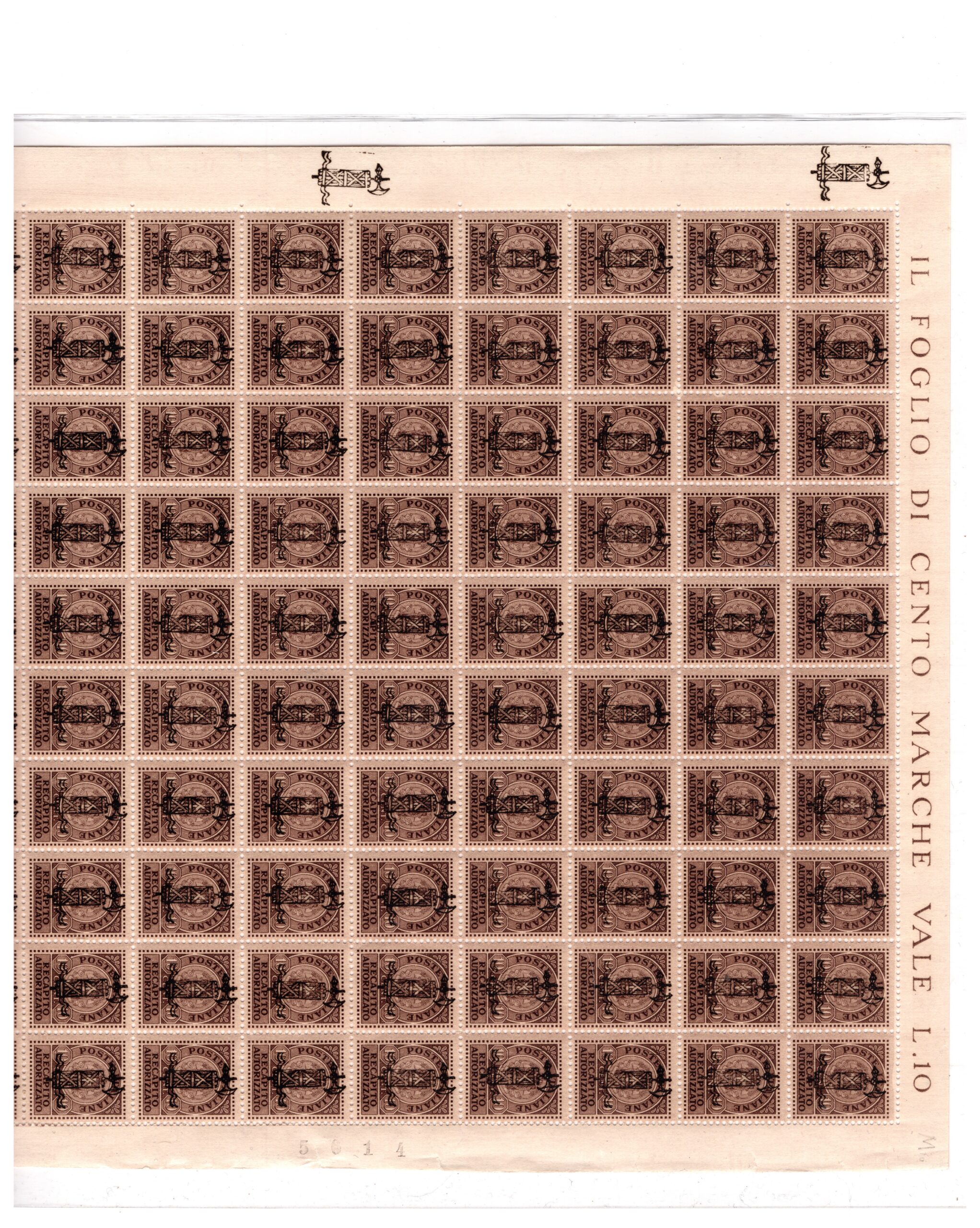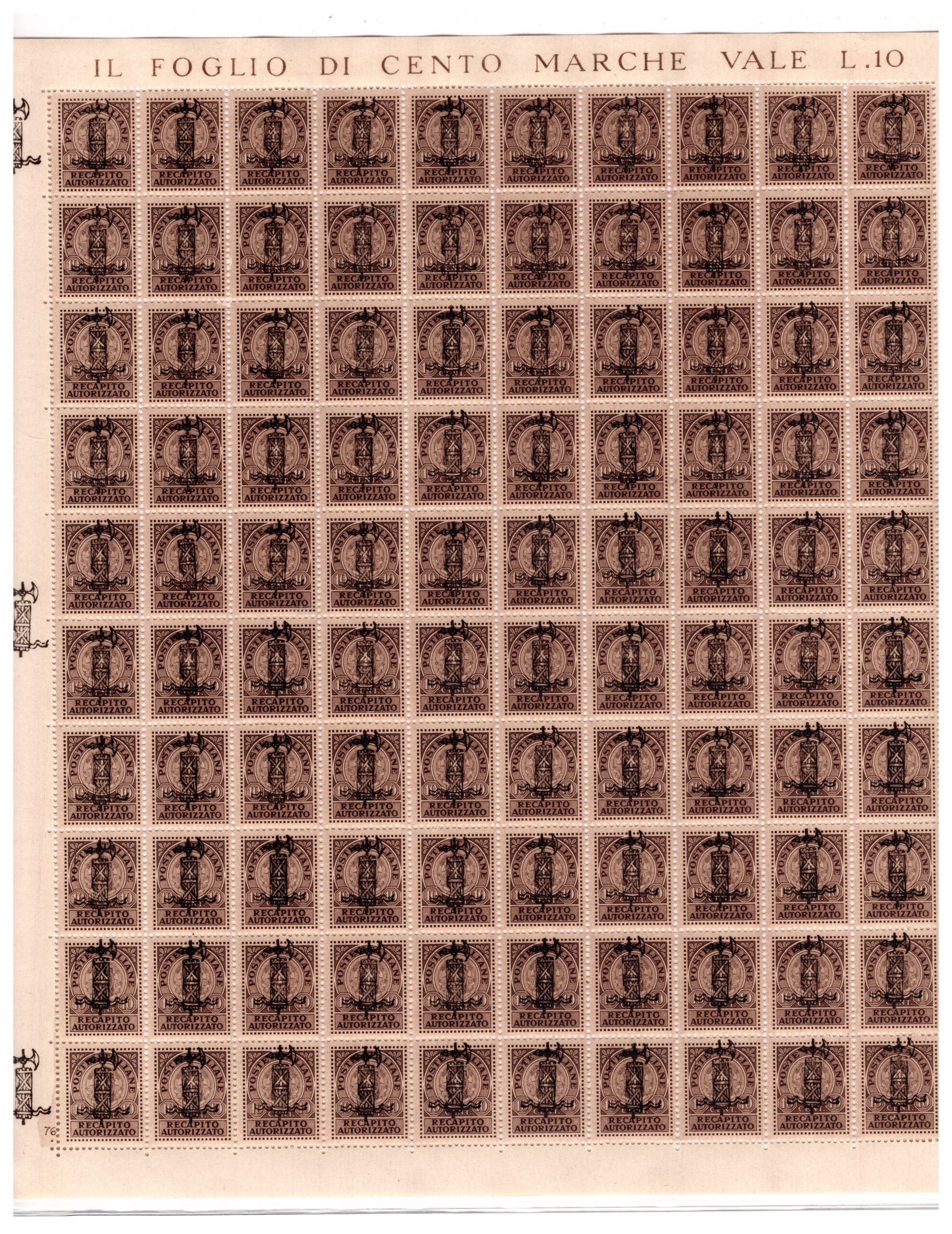francobollo in foglio GNR recapito autorizzato Torino cert. Oro Raybaudi rarissimo quantità
