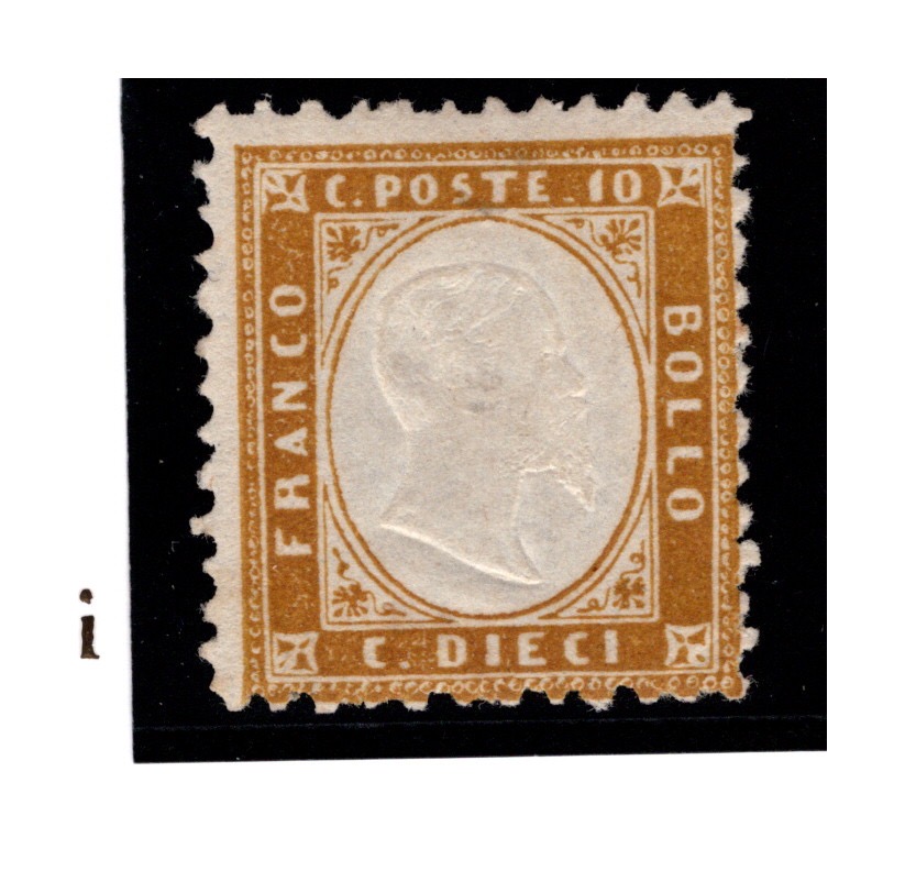 Francobollo regno d'alia numero 1 10 centesimi bistrò giallastro mnh cert. Colla quantità
