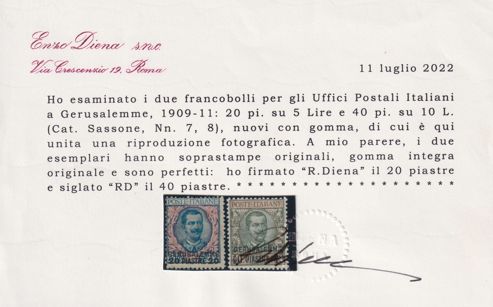 ITALIA 1909-11 UFFICI POSTALI ITALIANI ESTERO “GERUSALEMME” MNH CERT. DIENA