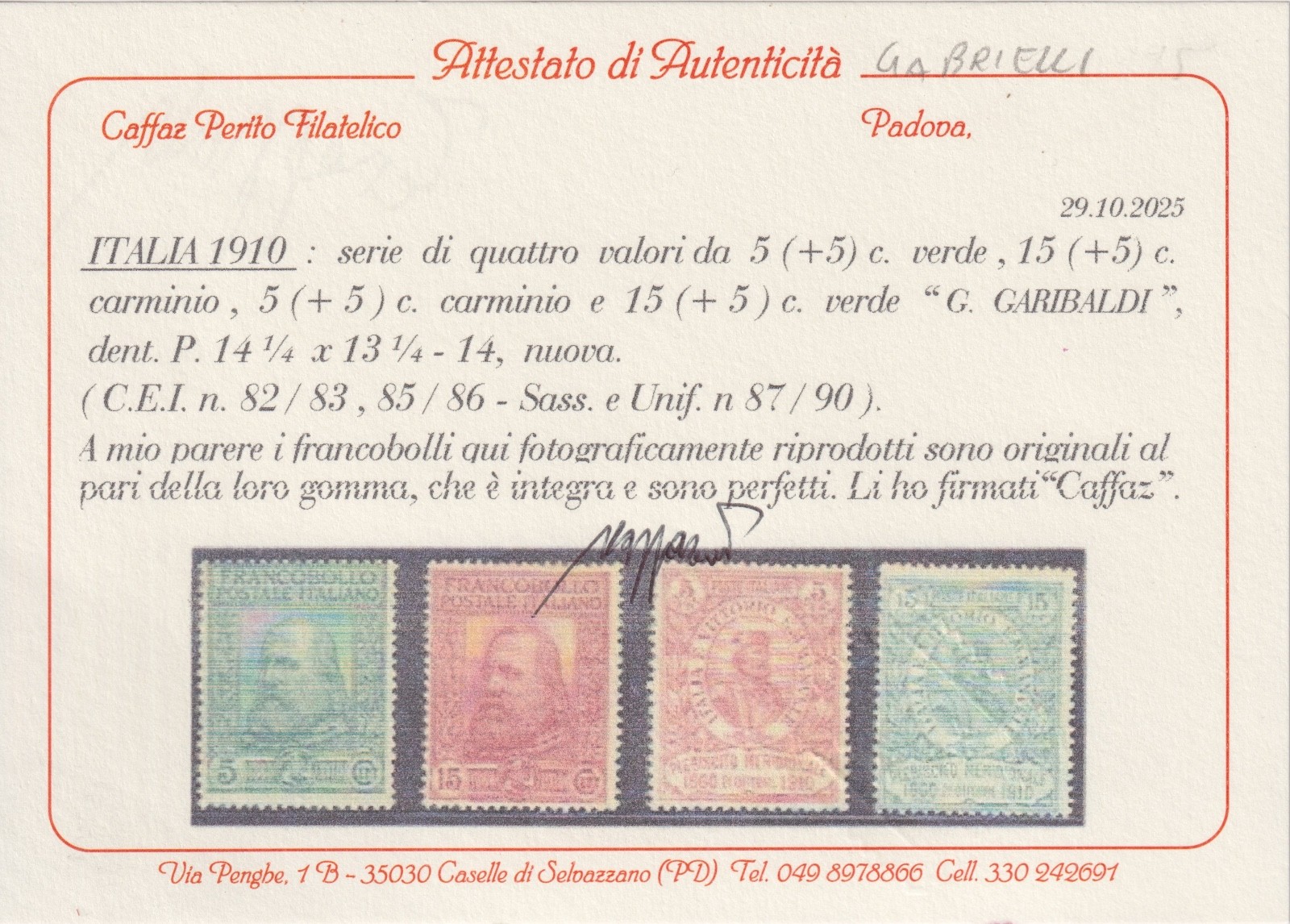 ITALIA 1910 GARIBALDI PLEBISCITO MERIDIONALE 4 VALORI MNH CERT. CAFFAZ quantità