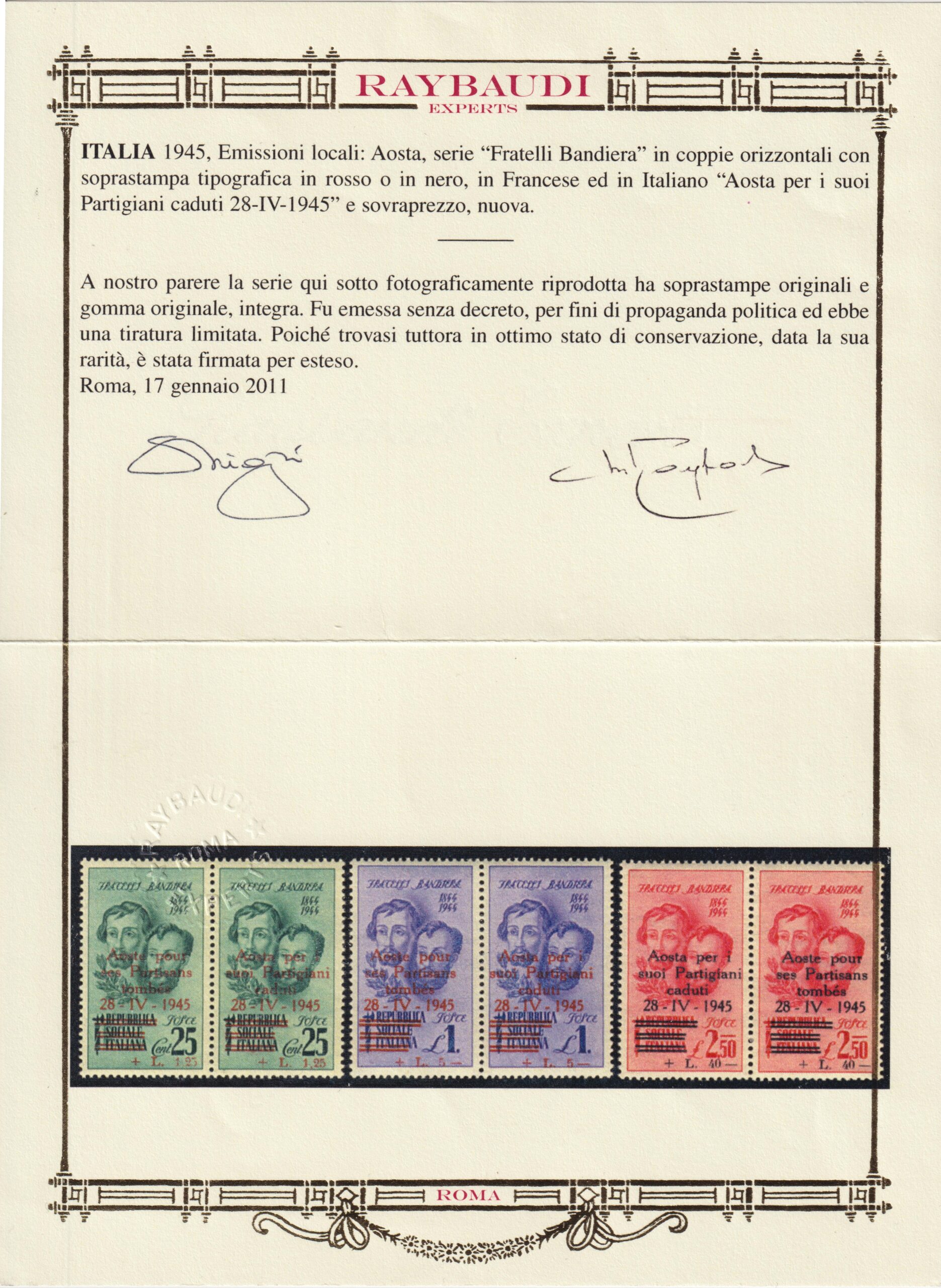 / ITALIA 1945 C.L.N. AOSTA M.N.H. CERT. RAYBAUDI RARO