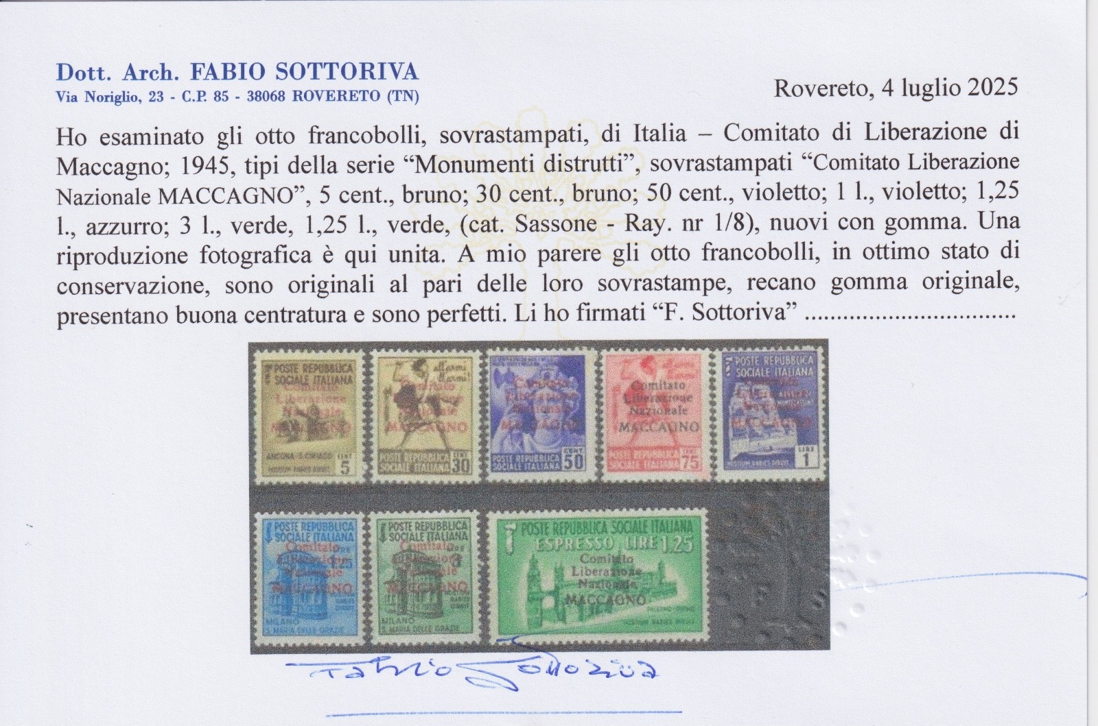ITALIA 1945 COMITATO DI LIBERAZIONE DI MACCAGNO G.O. CERT. SOTTORIVA quantità