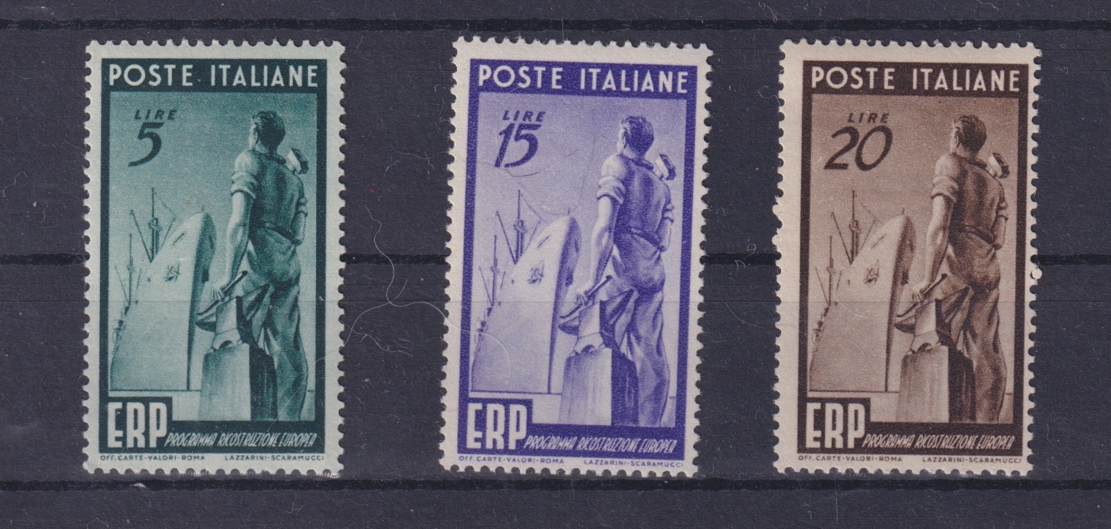 ITALIA 1949 RICOSTITUZIONE EUROPA 3 VALORI MNH quantità