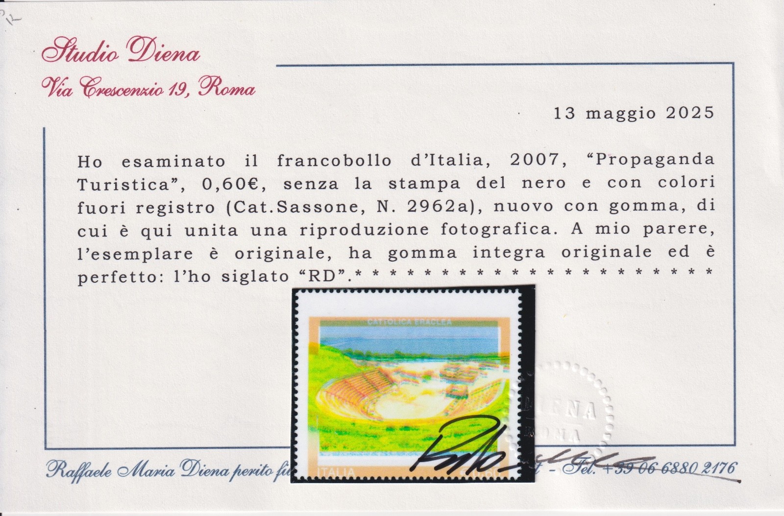 ITALIA 2007 PROPAGANDA TURISTICA COLORI FUORI REGISTRO MNH CERT. DIENA quantità