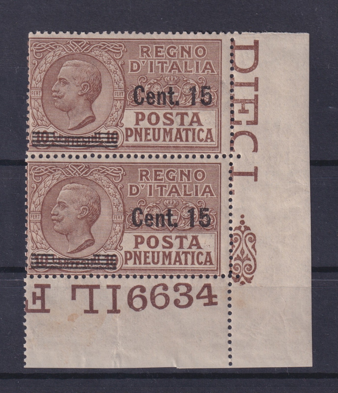 / ITALIA REGNO 1924 POSTA PNEUMATICA MNH CON NUMERO DI TAVOLA CERT. DIENA