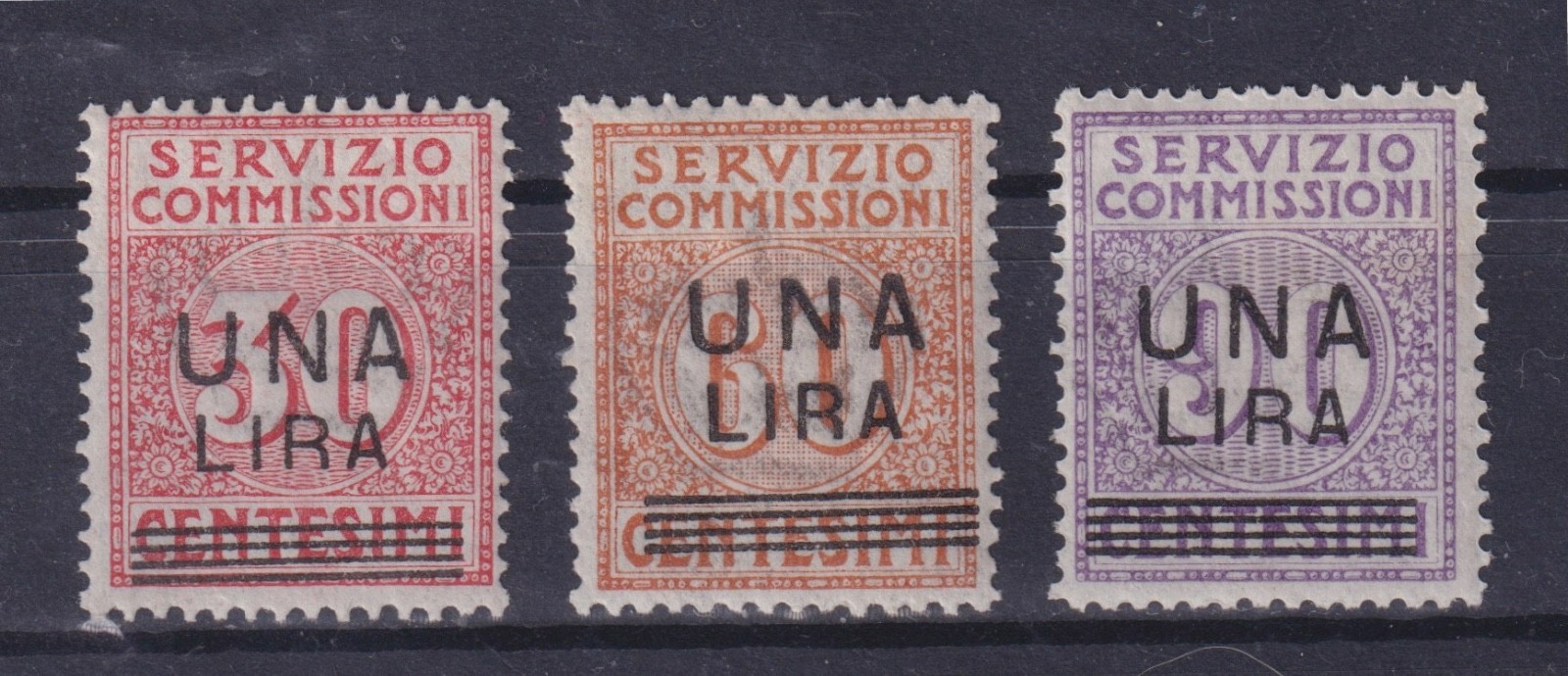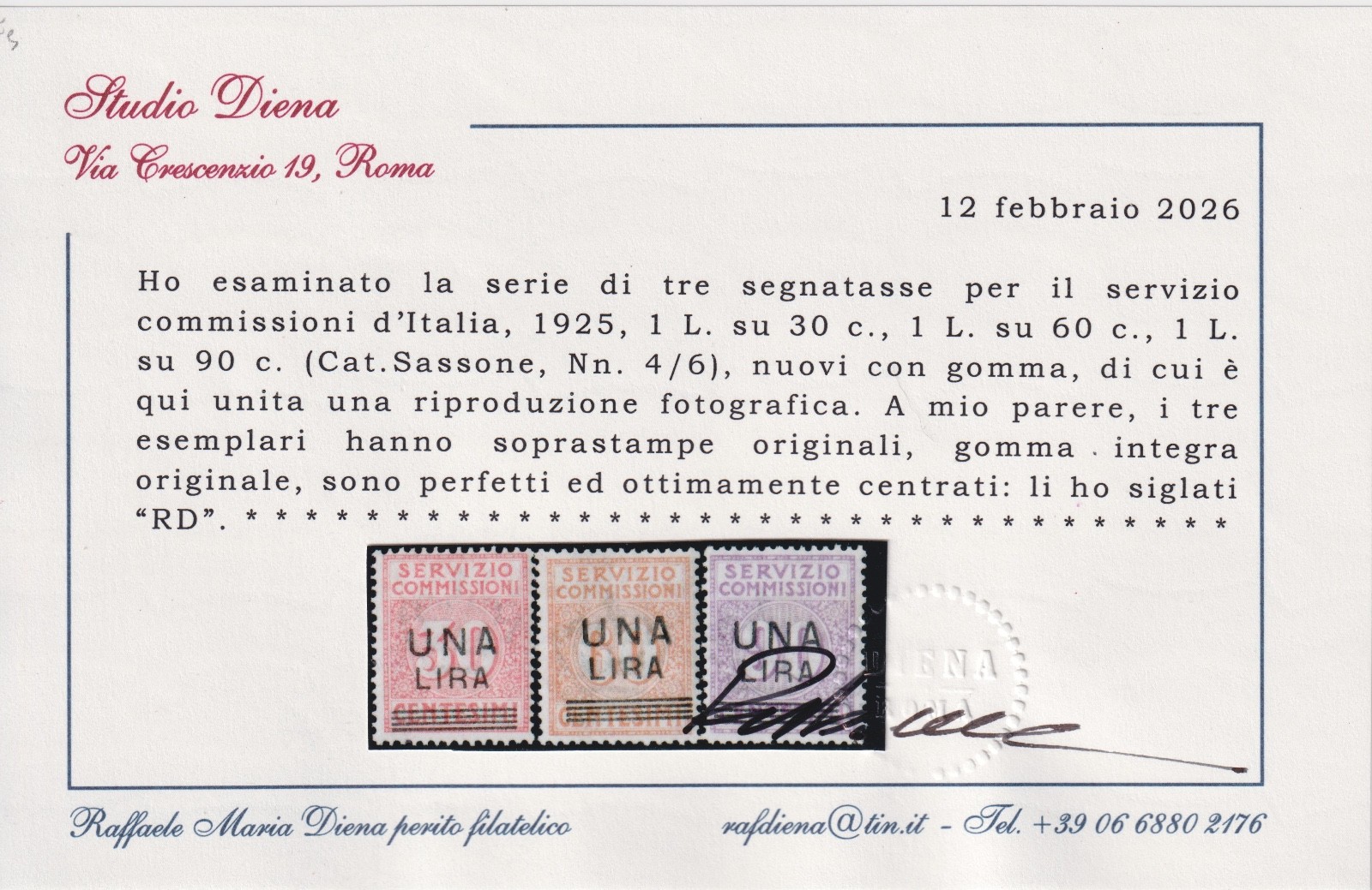 / ITALIA REGNO 1925 SEGNATASSE SERVIZIO COMMISSIONI SOVRASTAMPATI MNH CERT. DIENA