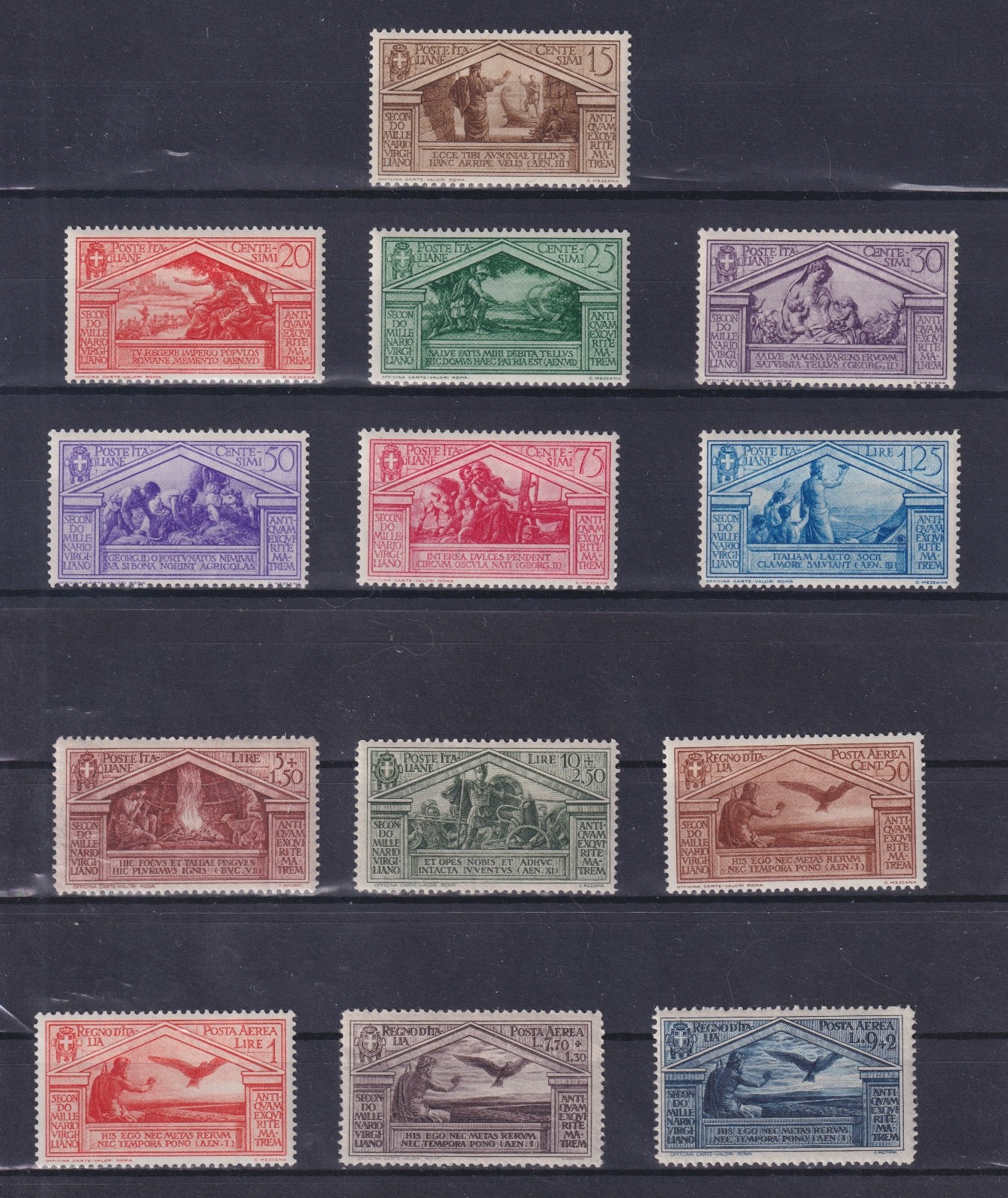 / ITALIA REGNO 1930 BIMILLENARIO VIRGILIO 13 VALORI MNH CERTIFICATO DIENA