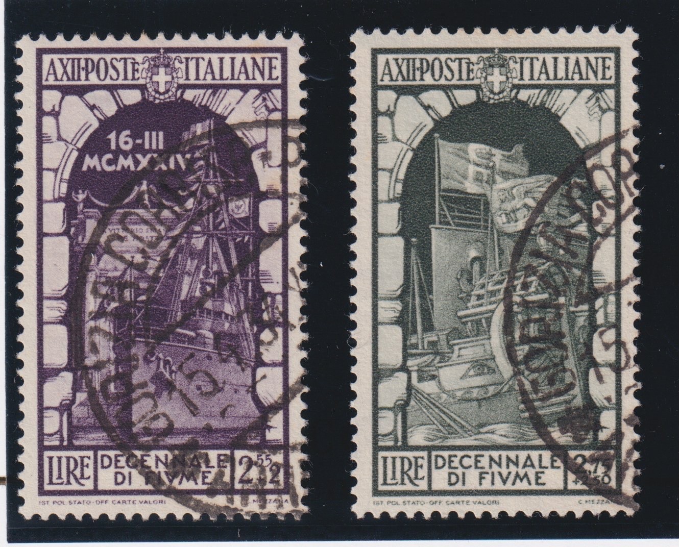 / ITALIA REGNO 1934 DECENNALE DELL’ANNESSIONE DI FIUME N.355-356 CERT. DIENA
