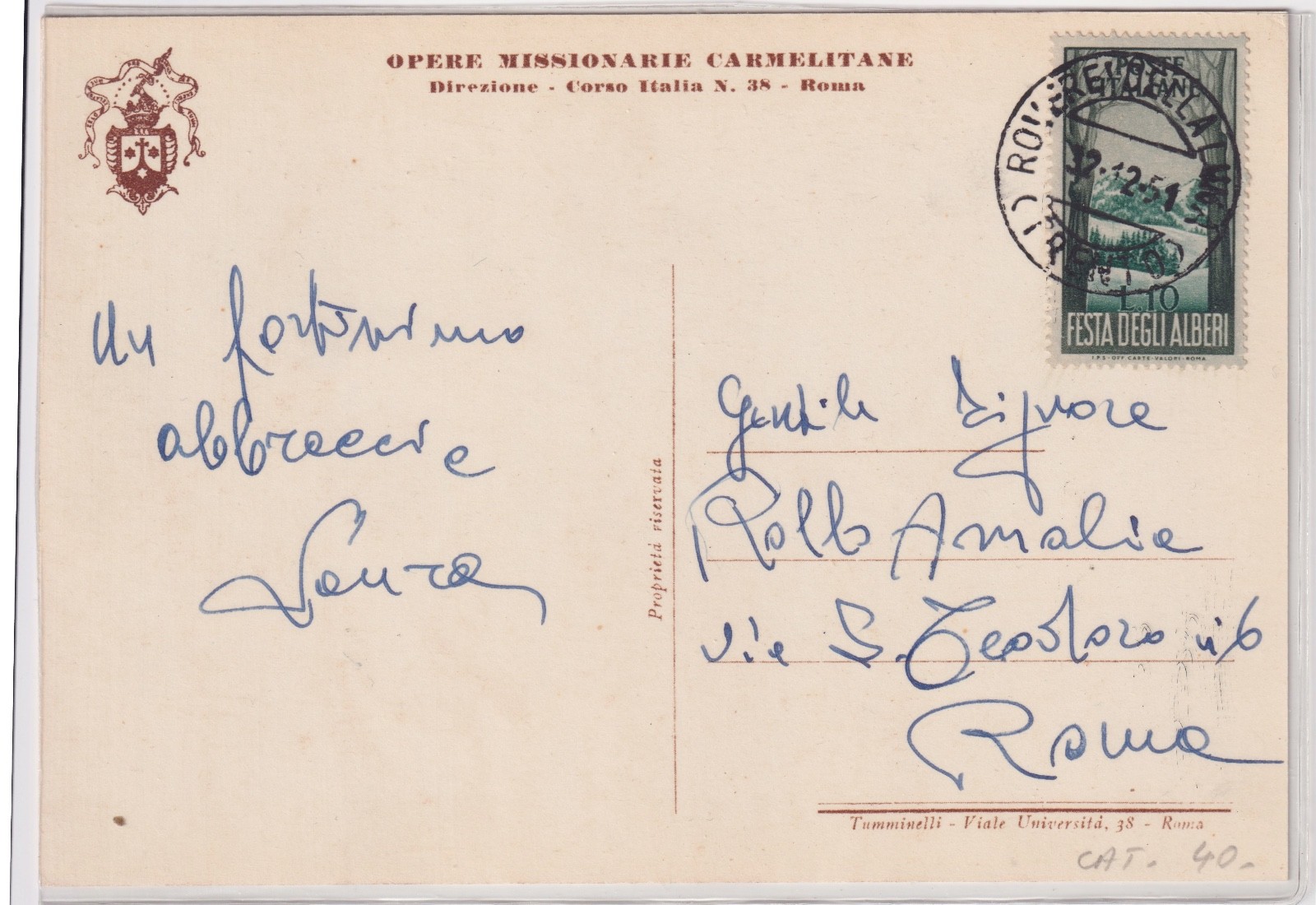 / ITALIA REGNO CARTOLINA OPERE MISSIONARIE CARMELITANE