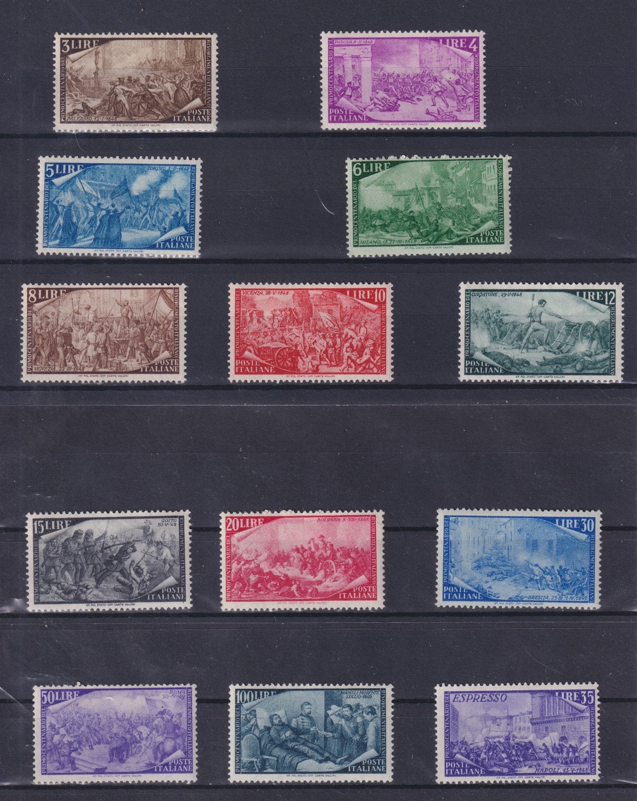 ITALIA REPUBBLICA 1948 RISORGIMENTO 13 VALORI MNH quantità