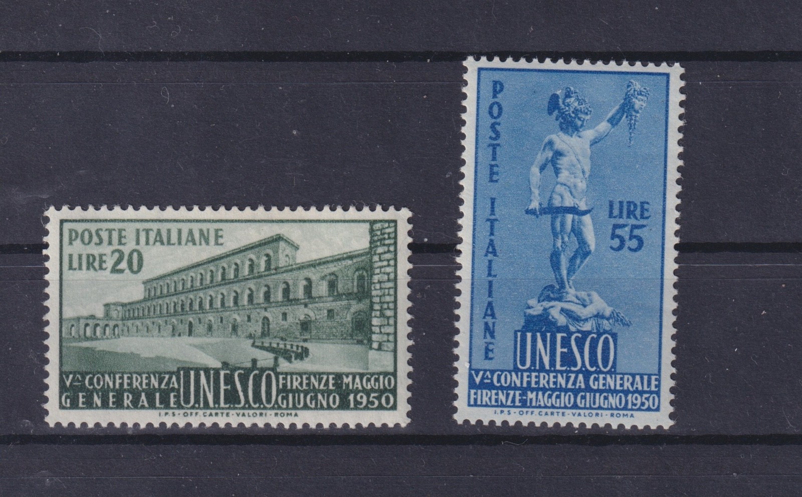 ITALIA REPUBBLICA 1950 UNESCO CONFERENZA GENERALE 2 VALORI MNH quantità
