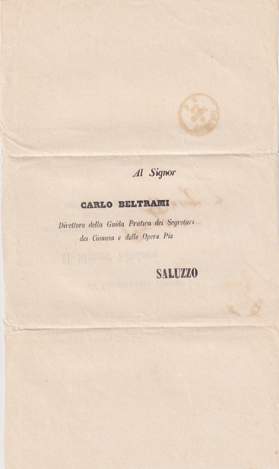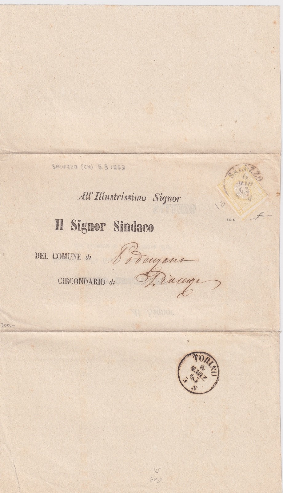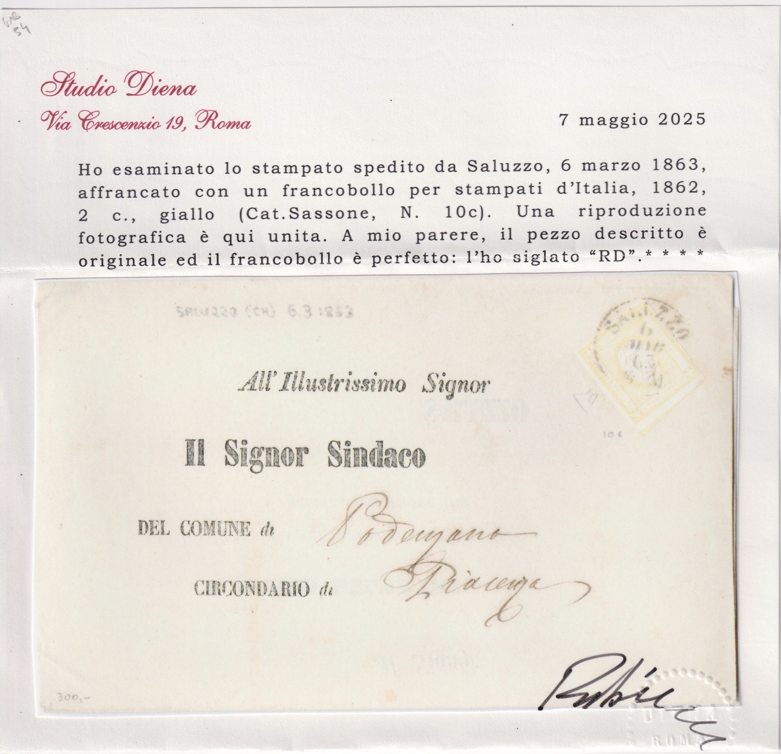 LETTERA AFFRANCATA CON UN FRANCOBOLLO DA SALUZZO 1862 CERTIFICATA DIENA quantità