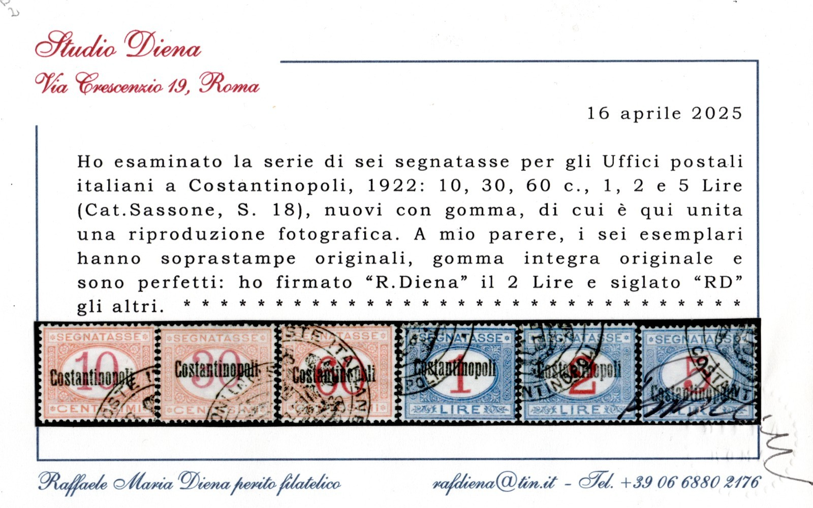 OCCUPAZIONI ITALIA CONSTANTINOPOLI 1922 MNH CERT DIENA quantità