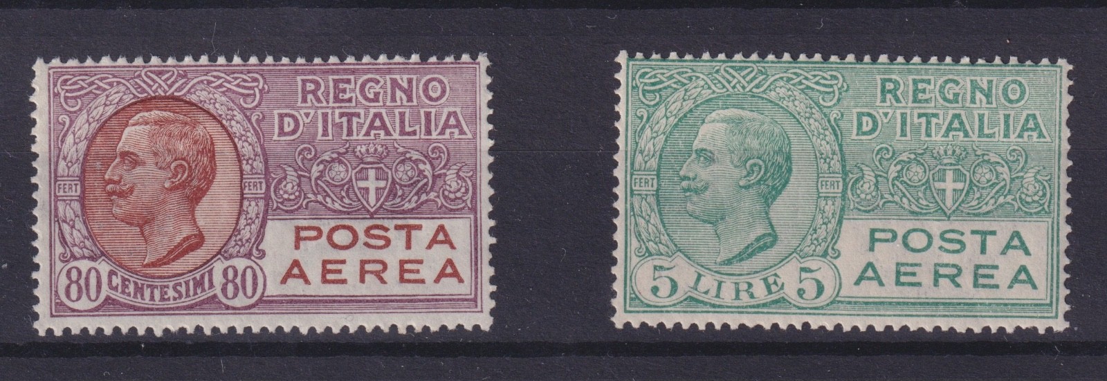 REGNO 1928 POSTA AEREA MNH CERTIFICATO DIENA 80 cent e 5 lire quantità