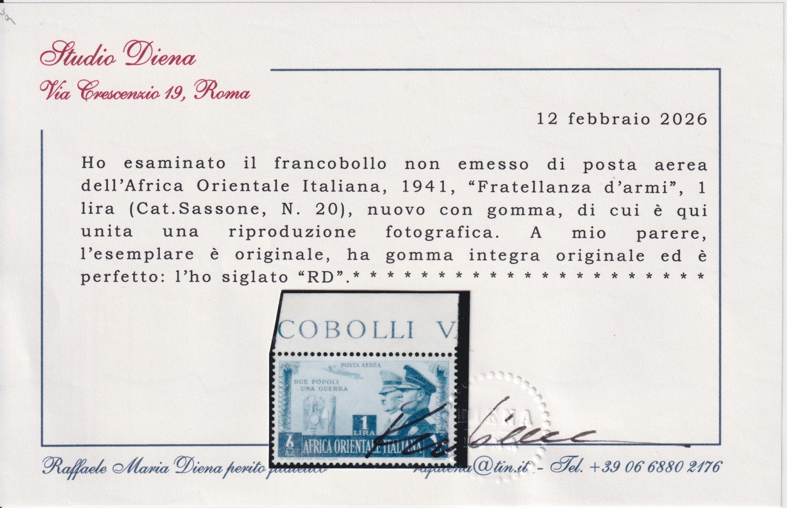 REGNO 1941 FRANCOBOLLO AFRICA ORIENTALE ITALIANA MNH CERT. DIENA quantità