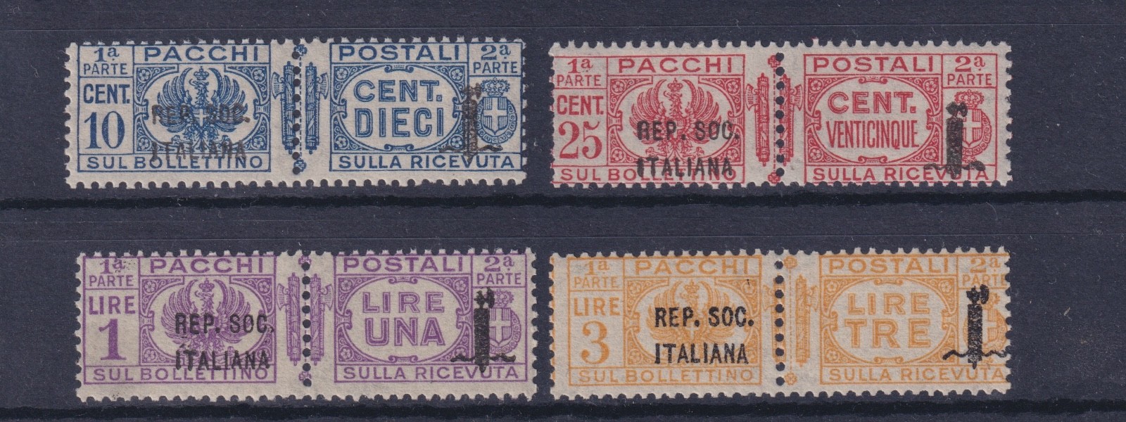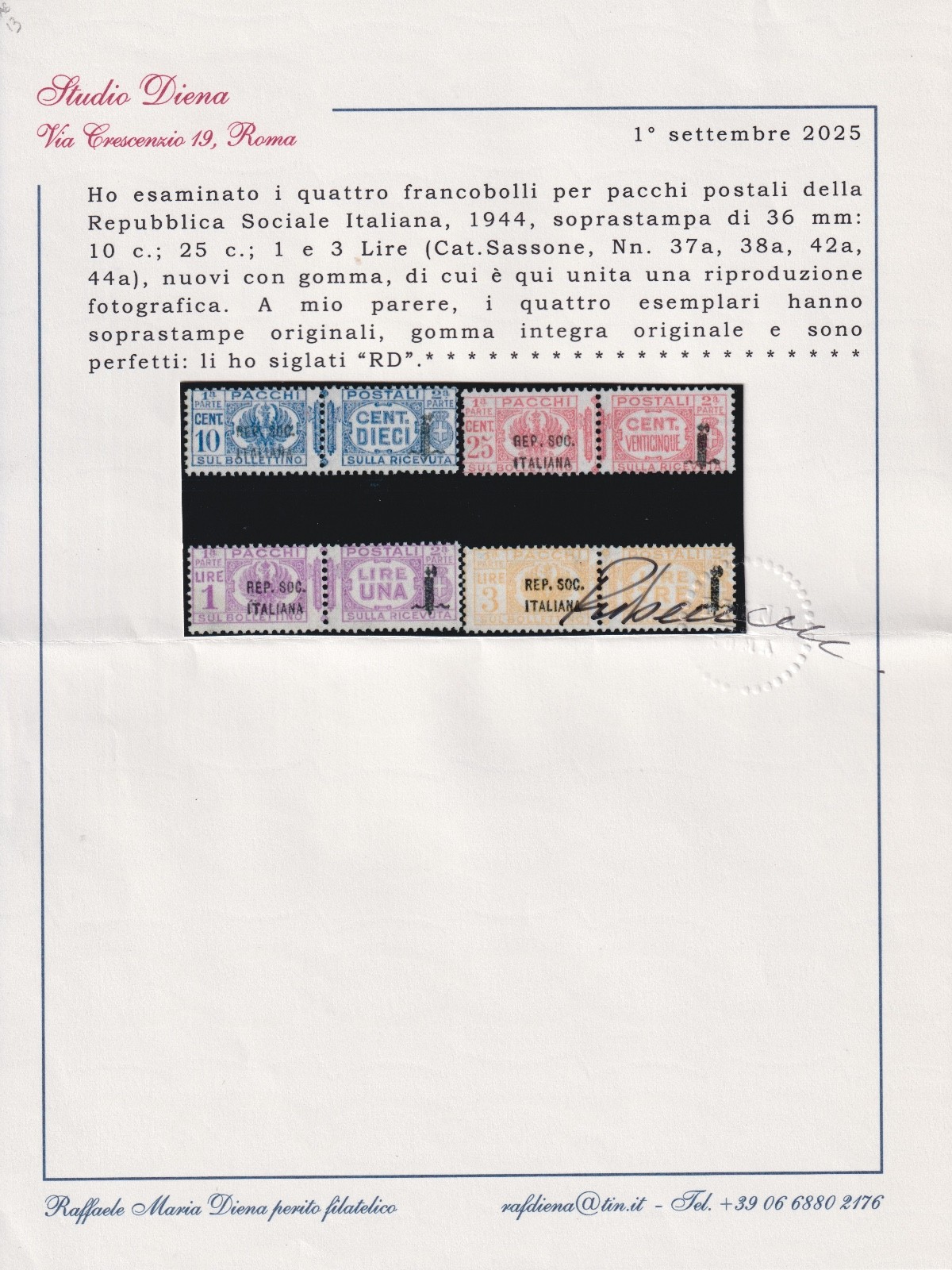 Regno 1944 pacchi postali G.N.R. rara varietà MNH cert. Diena quantità