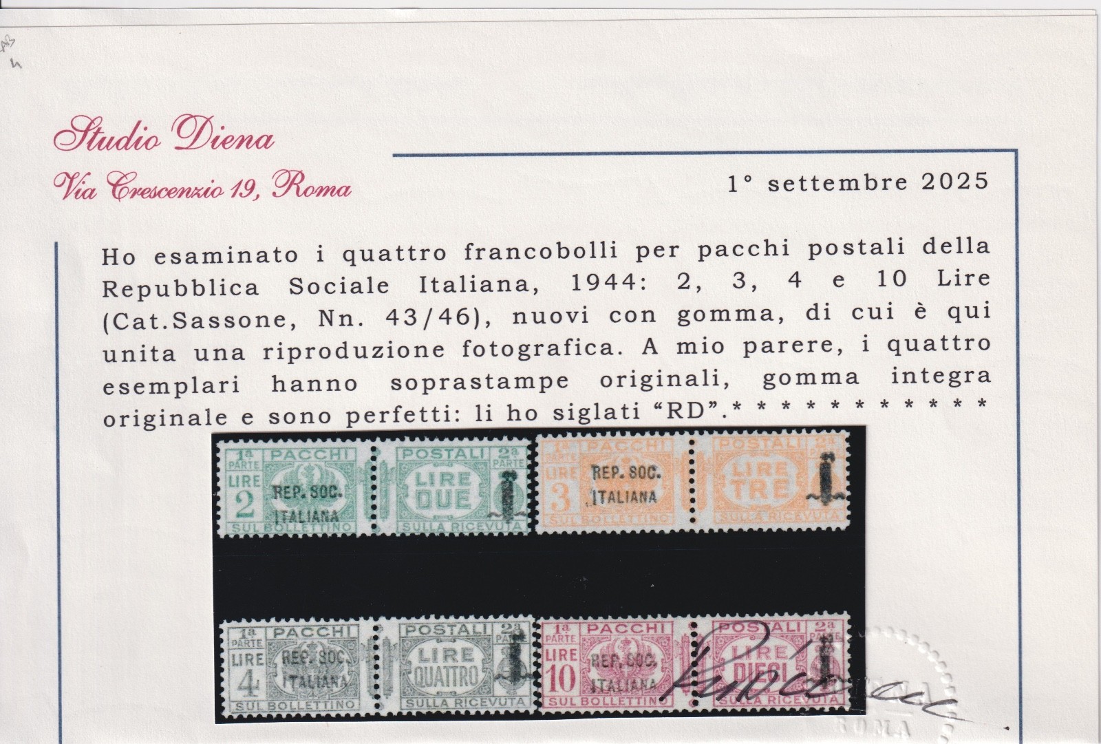 REGNO 1944 REPUBBLICA SOCIALE ITALIANA PACCHI POSTALI SERIETTA MNH CERT. DIENA quantità