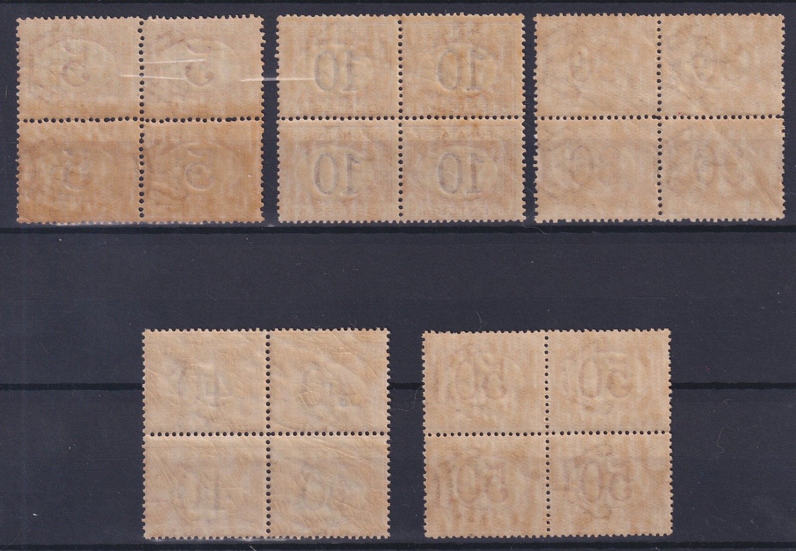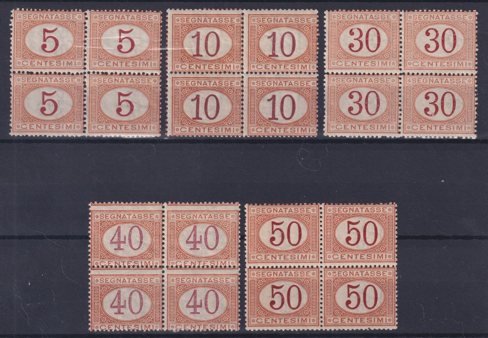 REGNO D'ITALIA 1890-94 SEGNATASSE QUARTINA SERIETTA M.N.H. quantità