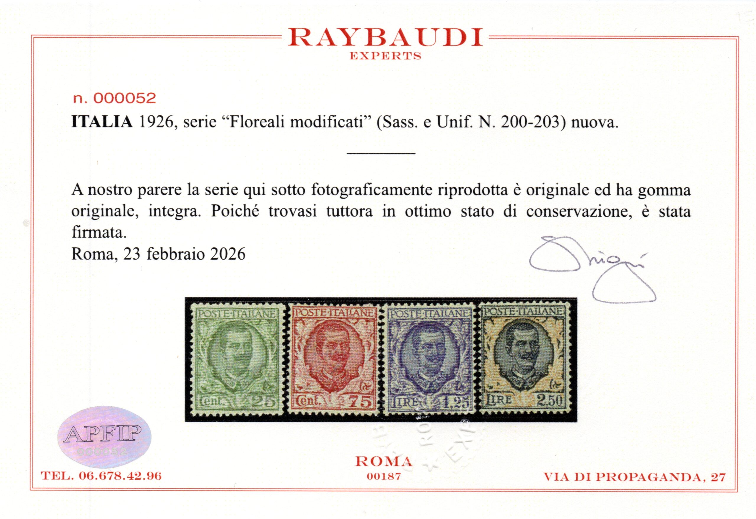 REGNO D'ITALIA - FLOREALE MODIFICATA - 1926 - MNH - cert. Raybaudi quantità