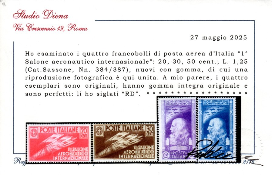 REGNO D'ITALIA SALONE AERONAUTICO MNH CERT DIENA quantità