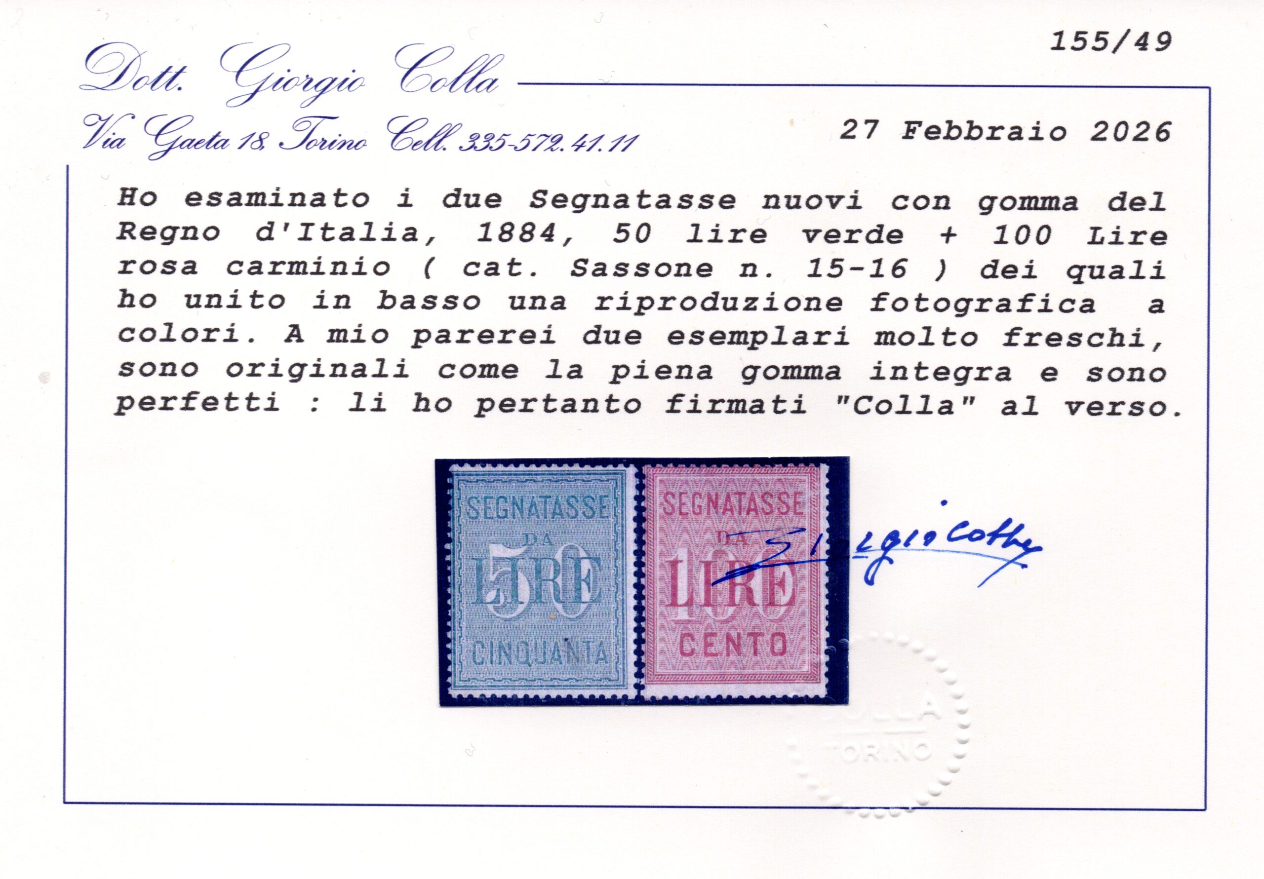 REGNO D’ITALIA – SEGNATASSE – 1884 – MNH – cert. Colla
