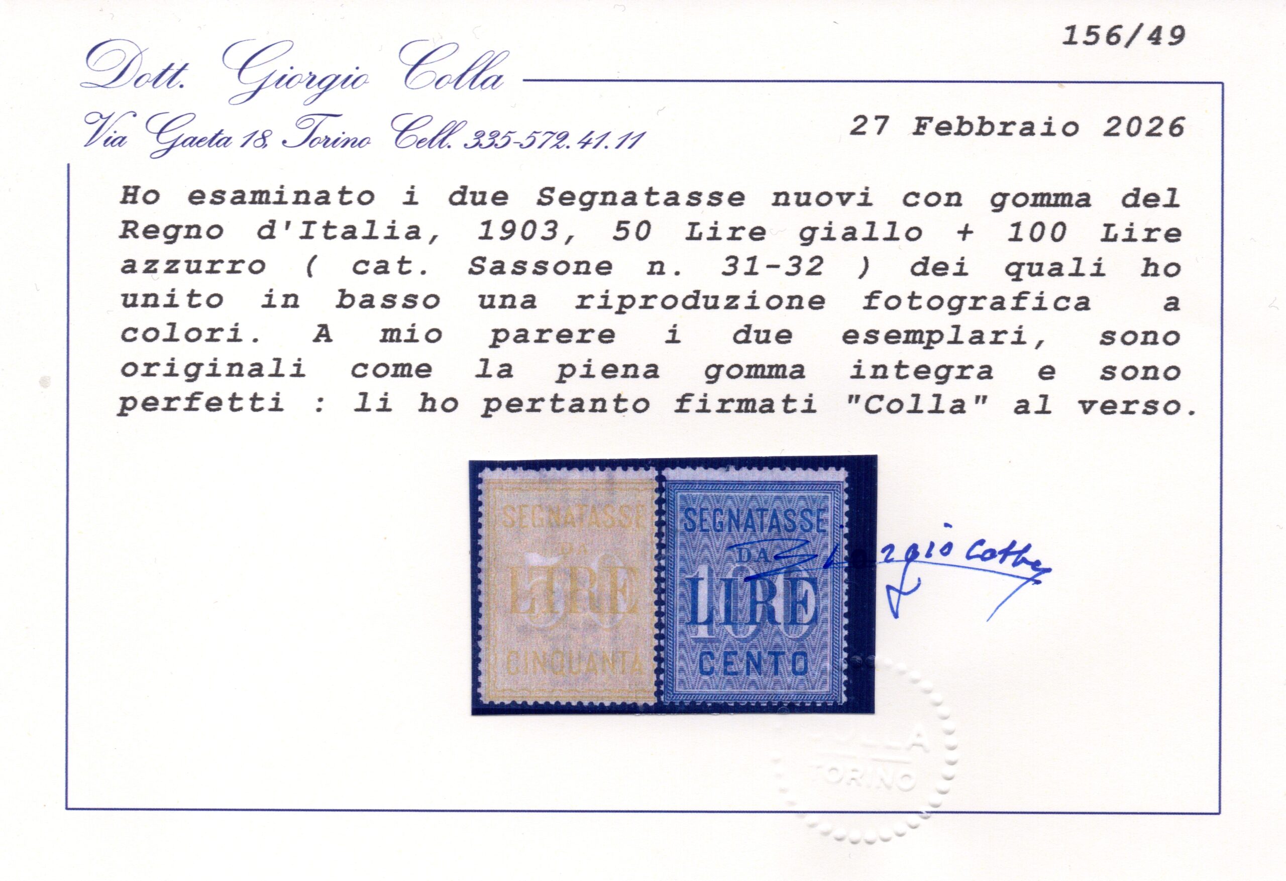 / REGNO D’ITALIA – SEGNATASSE – 1903 – MNH – cert. Colla