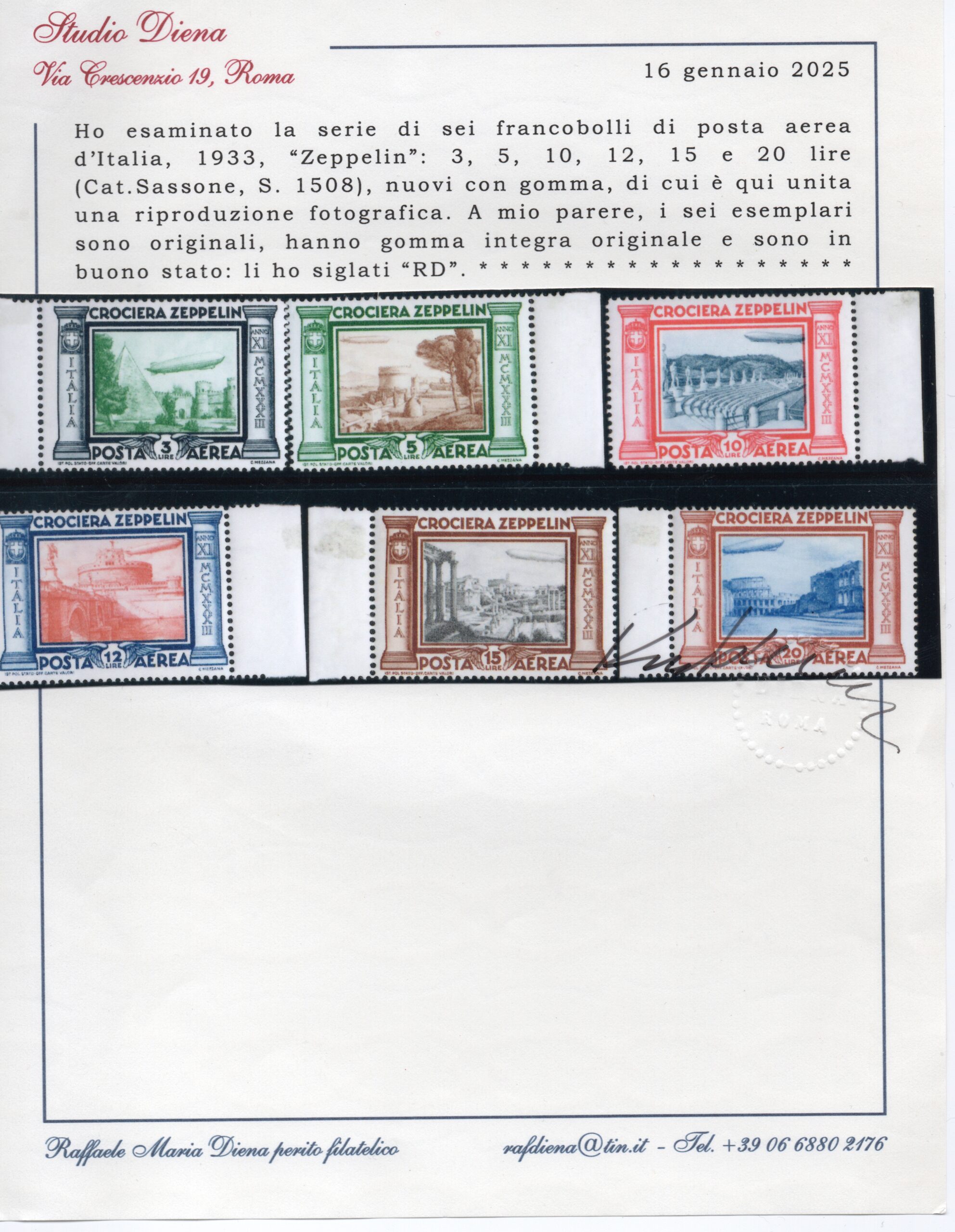 REGNO D'ITALIA - ZEPPELIN - 1933 - MNH - cert. Diena quantità