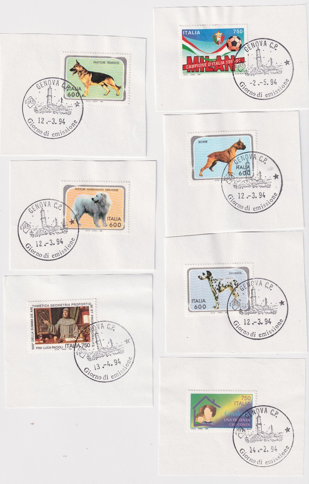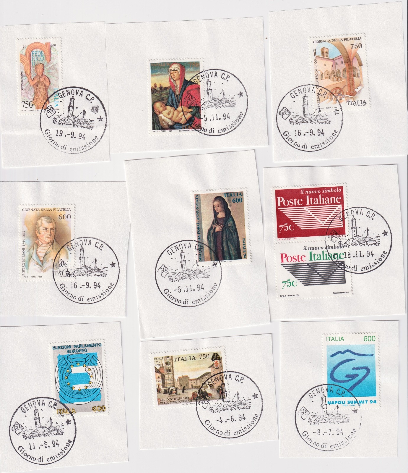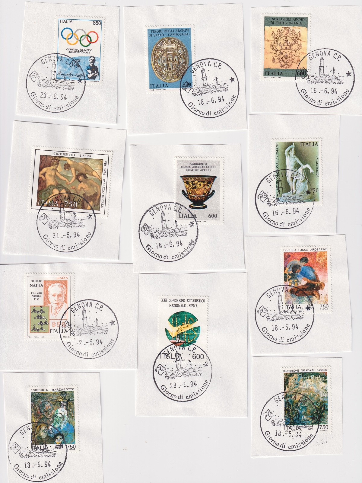 REPUBBLICA 1994 ANNATA COMPLETA SU FRAMMENTO CON ANNULLO 1° GIORNO quantità