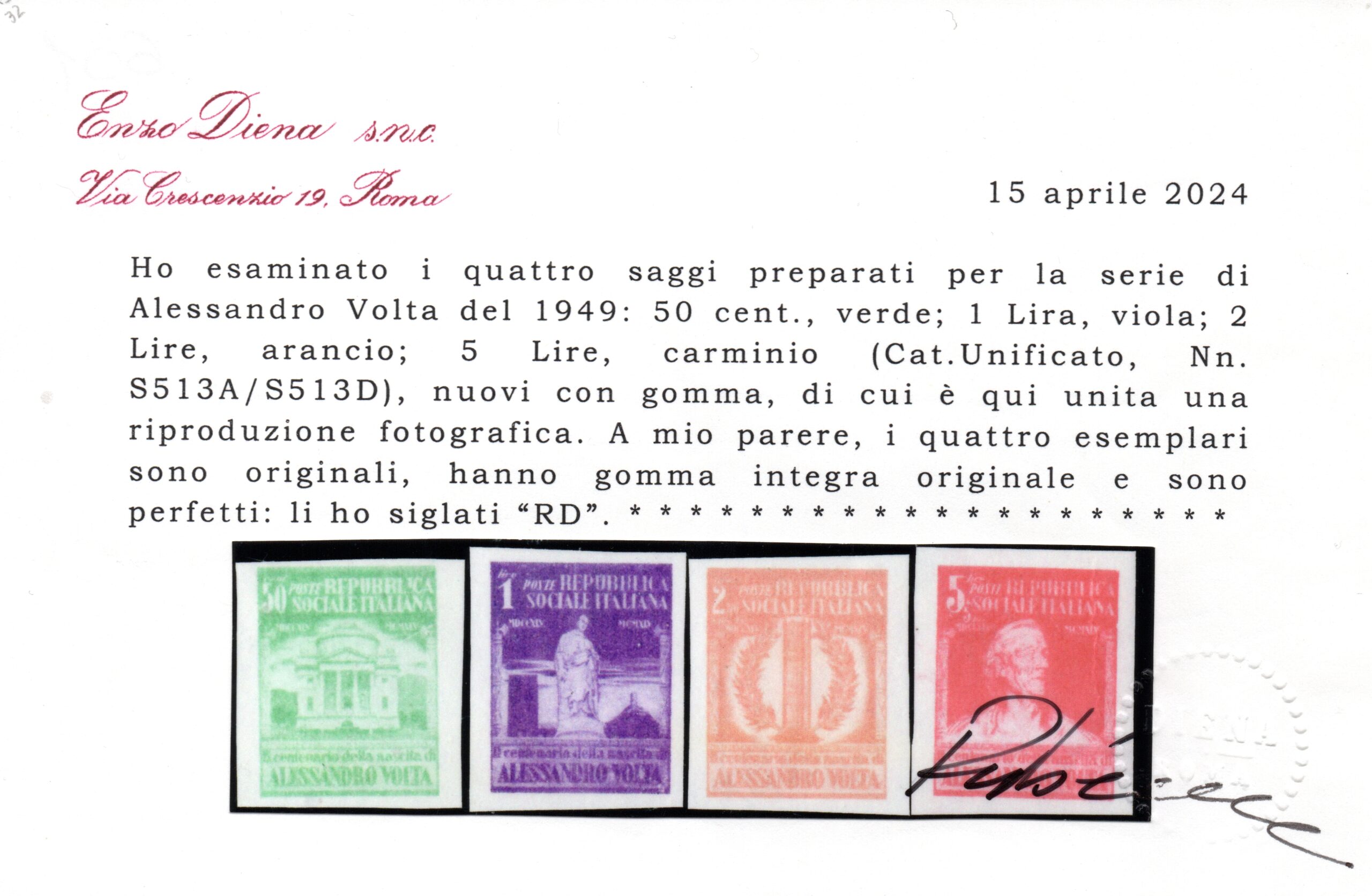 REPUBBLICA – SAGGI ALESSANDRO VOLTA – 1949 – MNH – cert. Diena