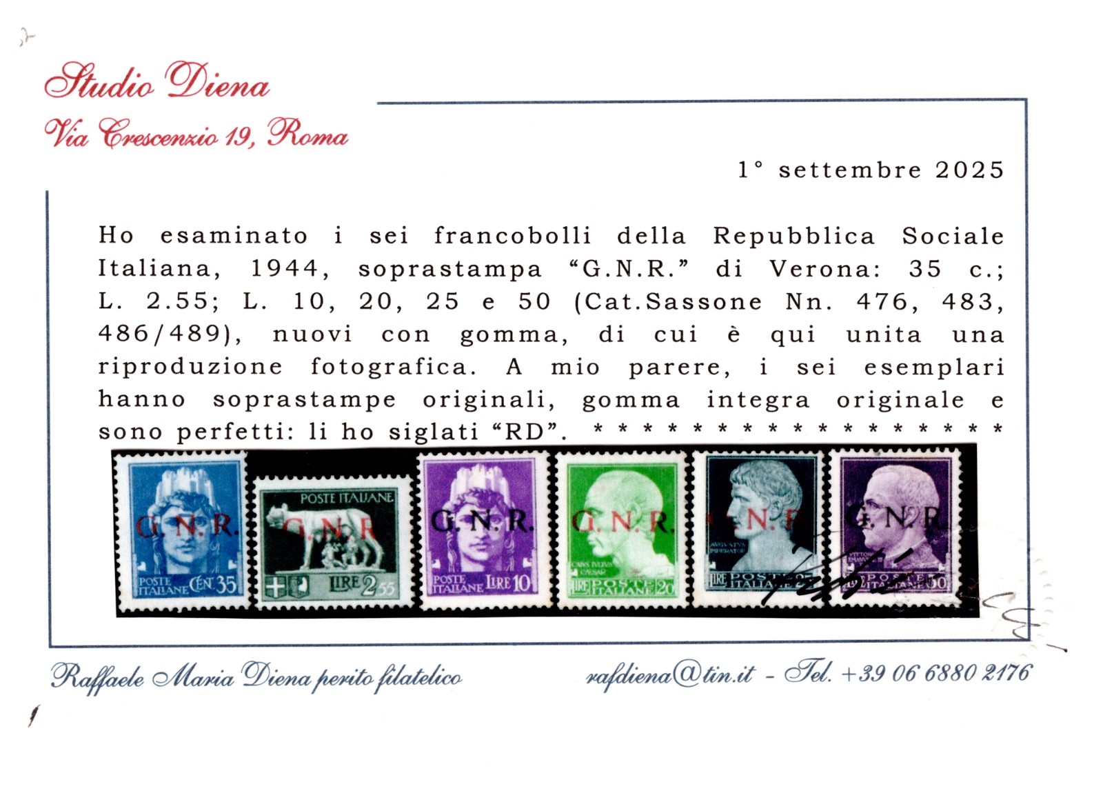 REPUBBLICA SOCIALE GNR POSTA ORDINARIA MNH SOLO VALORI IN FOTO CERTIFICATI
