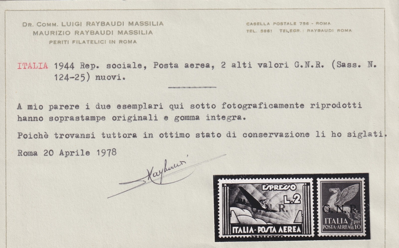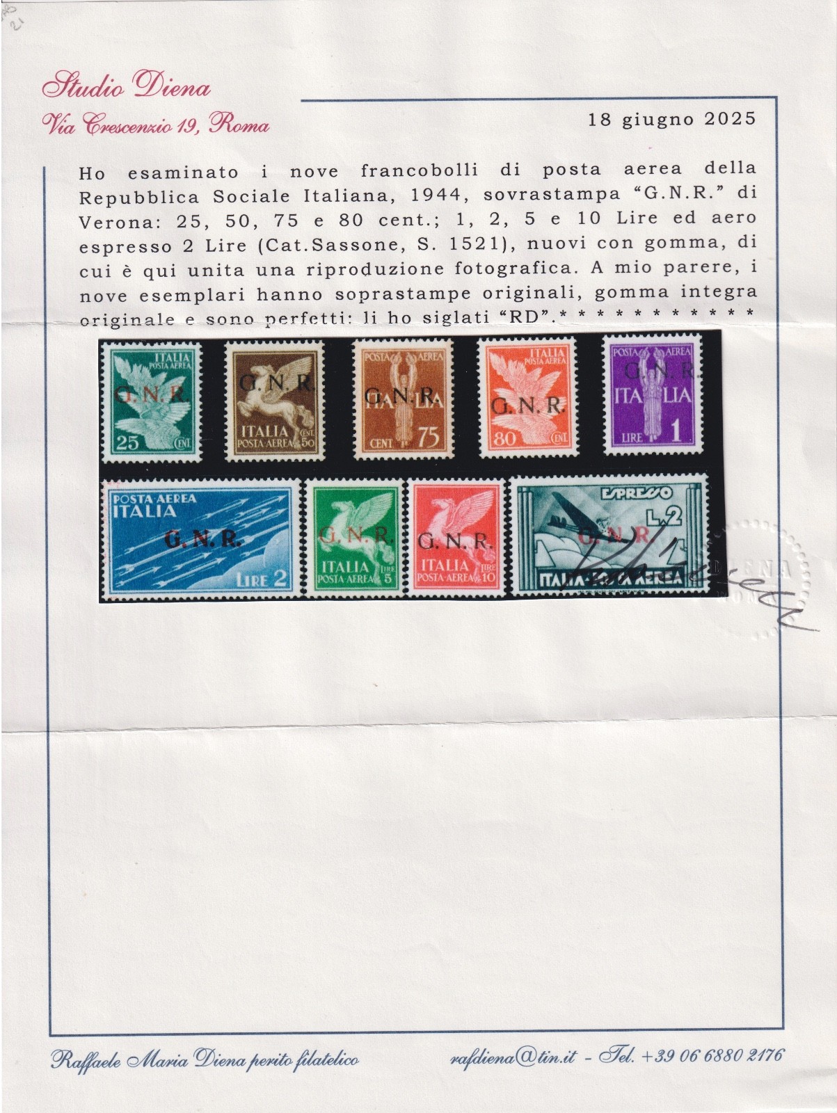 RSI 1944 G.N.R. DI VERONA P.A. MNH CERTIFICATO DIENA-RAYABUDI quantità