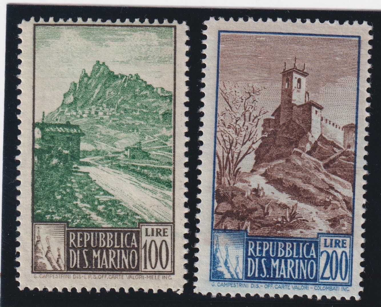 / San Marino 1949 Paesaggi 2 valori MNH CERTIFICATO DIENA
