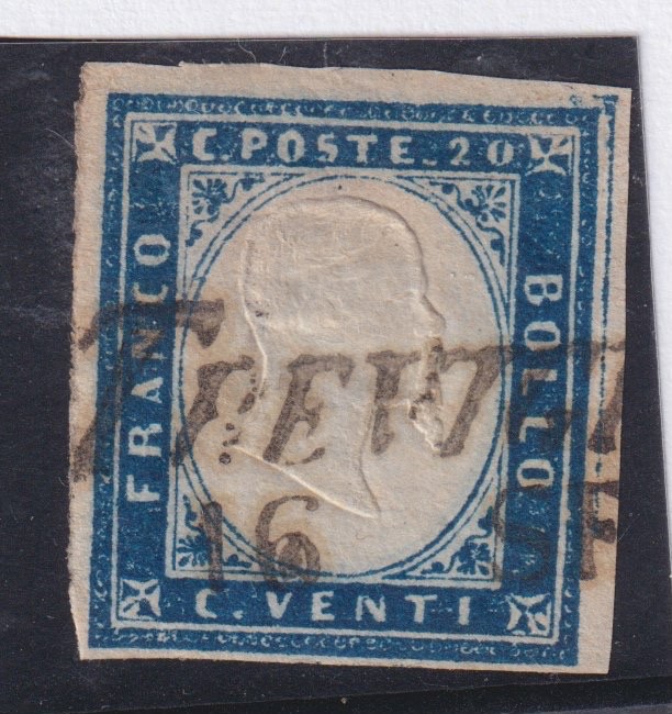 / SARDEGNA 1859 – CENT.20 COBALTO OLTREMARE N.15 Ba