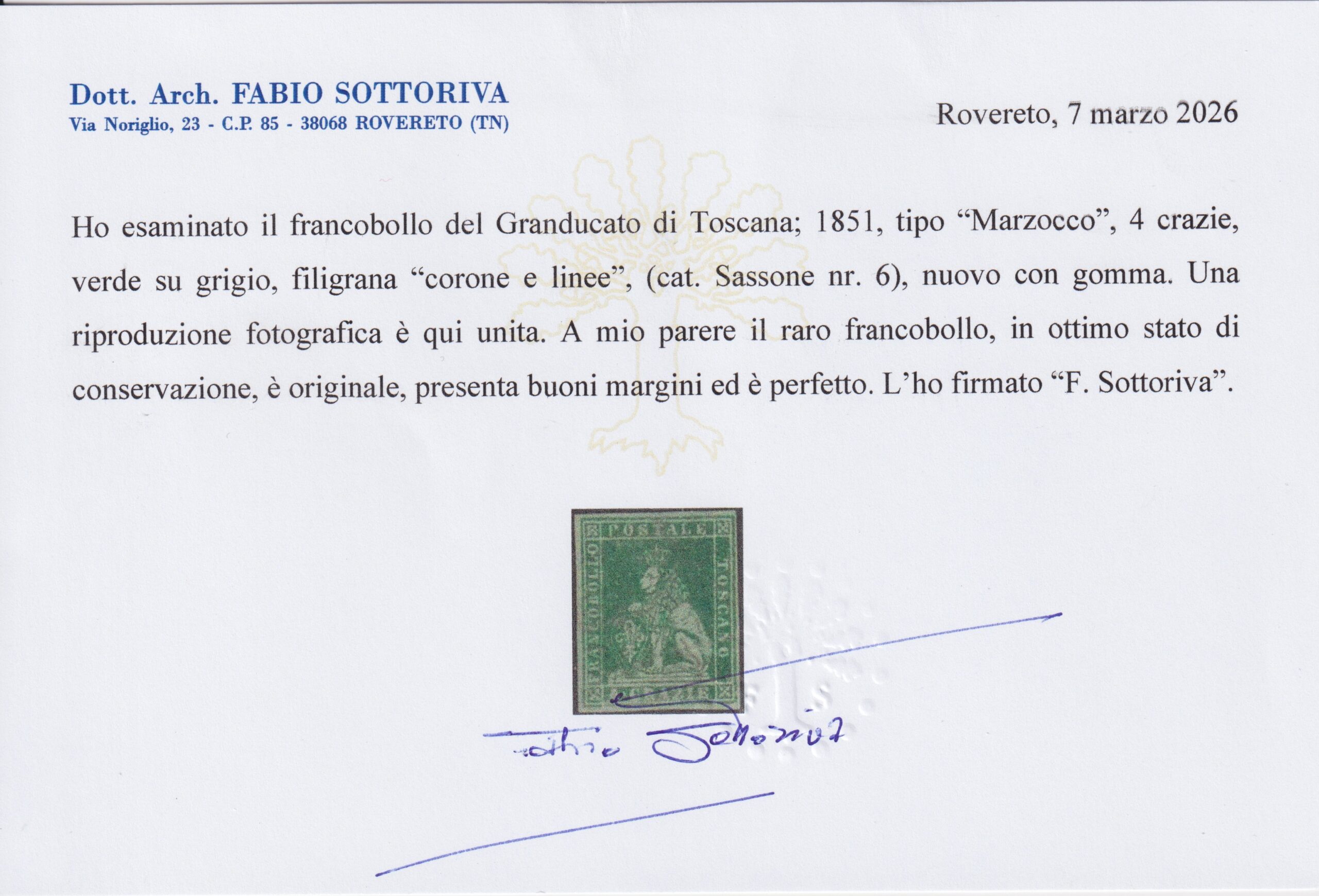 TOSCANA 1851 "MARZOCCO" 4 CRAZIE G.O. CERT. SOTTORIVA quantità